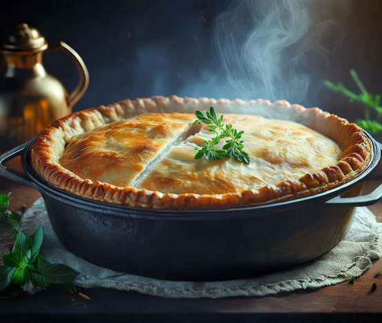 Transfer the mixture into the pie pan/earthen crock covered with the pie dough and cover it up as described above.